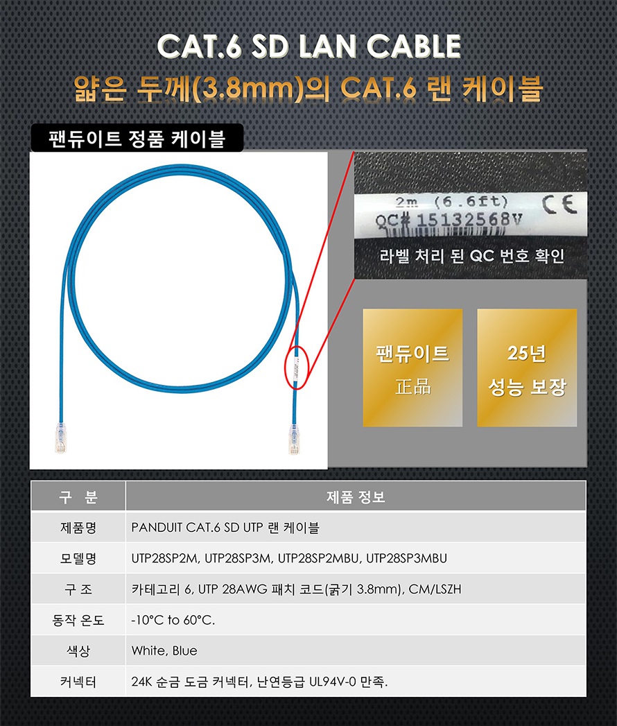 팬듀이트 LSZH 난연 SD 랜케이블 화이트 (2M/CAT.6/UTP)